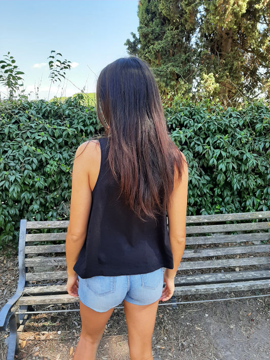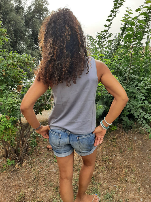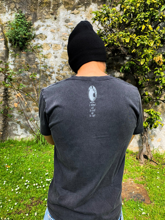 Una stampa che richiama in ogni dettaglio il meraviglioso elemento che è l'acqua su un cotone 100 % organico earth positive effetto vintage